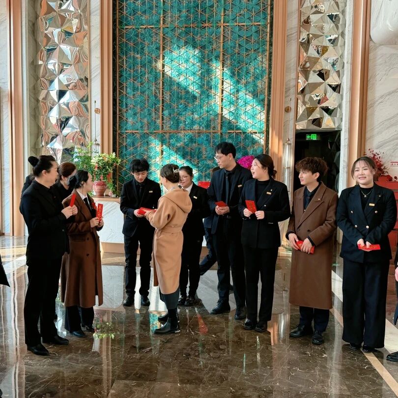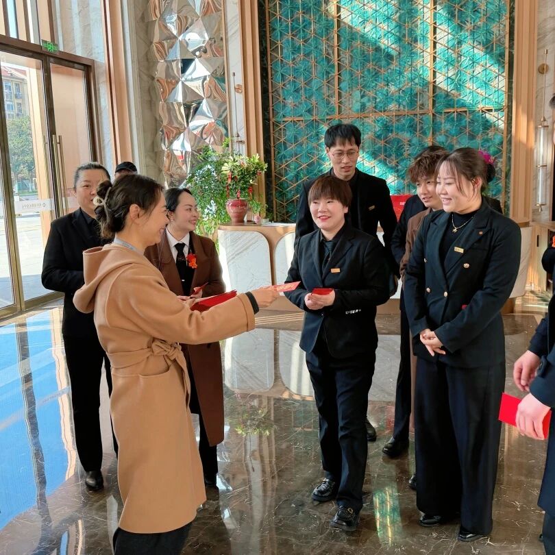 在无锡锡山智选假日酒店,创始人及董事长与在岗员工亲切交流,了解节日期间的工作安排,感谢大家的辛勤付出,并送上新年礼物。